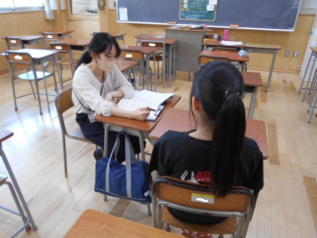 5月7日~16日の間、放課後に教育相談が行われています。担任が学級の生徒一人一人と話をし、困っていることがないか、相談にのっています。生徒の皆さんにとって、毎日安心して通える楽しい学校であれば、うれしいです。