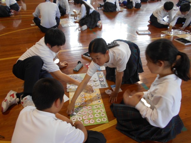 富山市役所から講師の方を呼び、子どもと大人のSDGs学習ゲーム「Get The Point」を行いました。SDGsについて考えながら、富山のことを学びました。とても盛り上がり、各グループで歓声があがっていました。1学年では今後「富山市マスターになろう」という題材で、富山市のことを調べていきます。