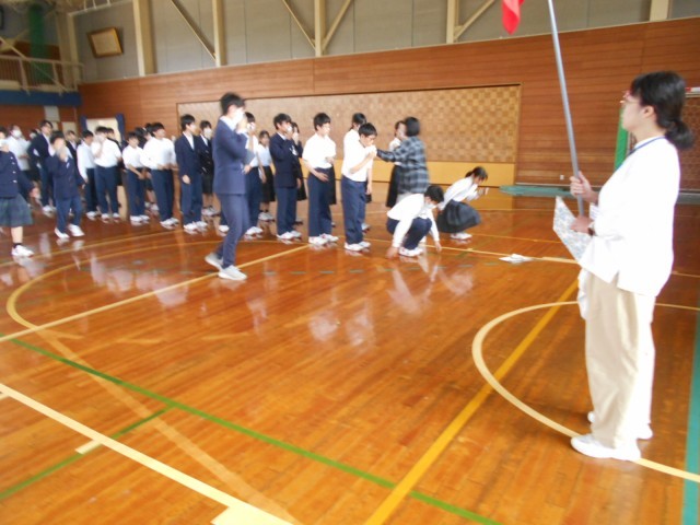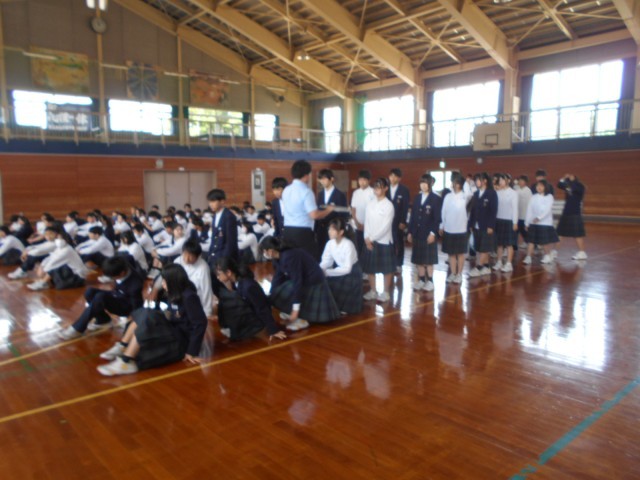 今年度、最初の避難訓練を行いました。生徒は静かに放送を聴き、迅速に体育館に避難することができました。