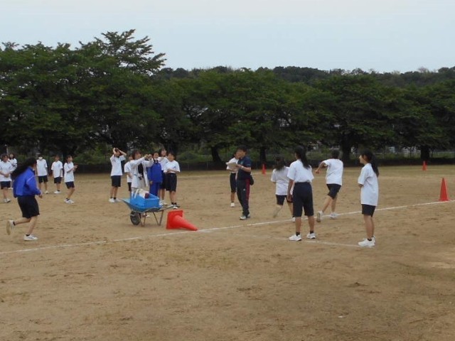 2学年では、リレーカーニバルを行いました。男女別の学級対抗全員リレーで、全員が力一杯走り、全員が一生懸命応援していました。どのクラスも団結が強まるとよいです。