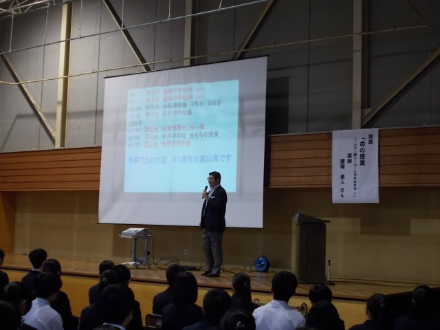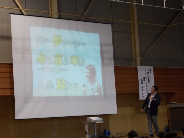腰塚勇人さんを招いて「命の授業 ~ドリー夢メーカーと今を生きる~」を演題に講演を行いました。腰塚さんから講演の中でたくさんの言葉をいただきました。
