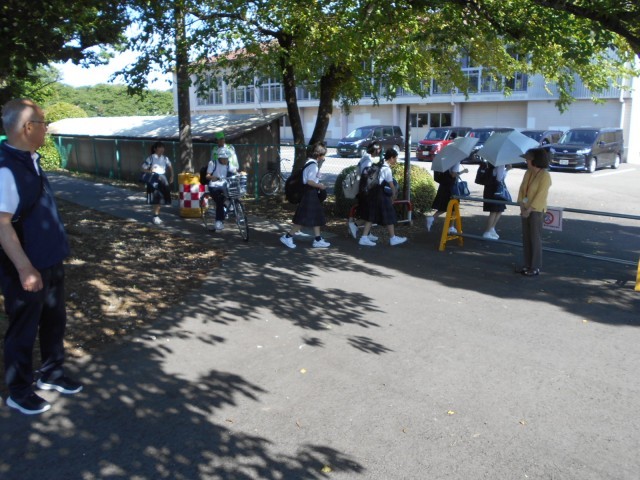 地域ぐるみ挨拶運動最終日は朝から強い日差しの下でしたが、多くの保護者の皆様と地域の方々に参加いただきました。もちろん、生徒会役員も正門と生徒玄関の二手に分かれて、挨拶に加わりました。この3日間で西中生の挨拶が一段とよくなったように感じました。