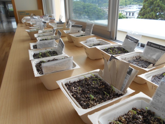 写真クリックして上から1組数学、2組保健、3組技術、発芽したミニトマトの様子