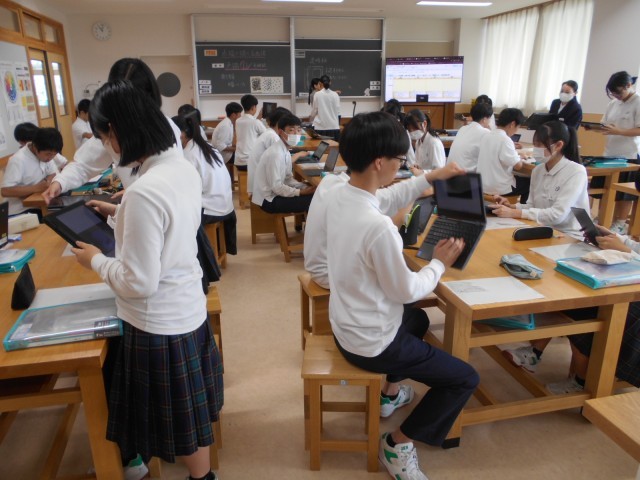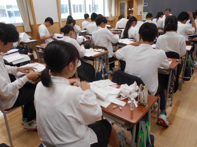 写真クリックして上から1組英語、2組理科、3組美術の様子