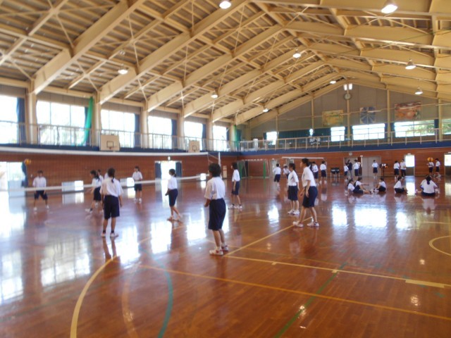 3組保健体育はバレーボール。3組の皆は、暑い体育館で汗びっしょりになって活動していました。