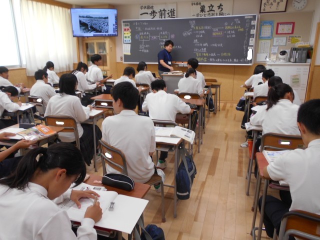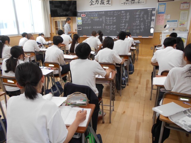 1組数学では平方根の計算、2組と3組の社会では、戦後の日本について学習していました。来週の期末考査に向け、学習への集中力が高まってきているように思います。