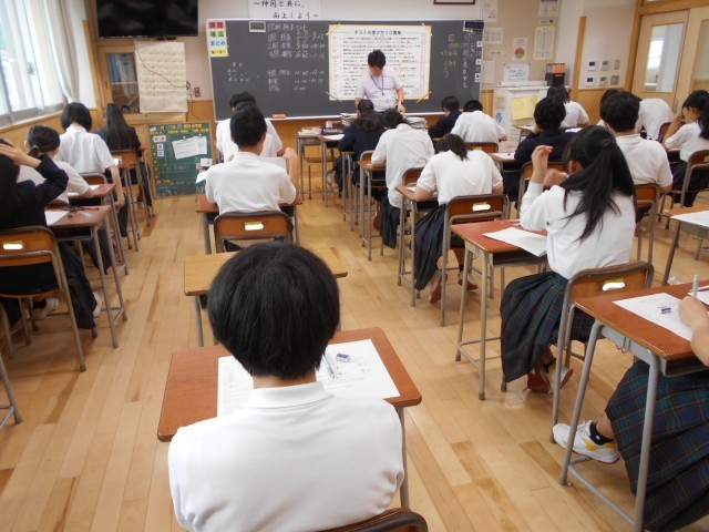 写真クリックして上から2限音楽の試験に臨む1組、2組、3組の様子