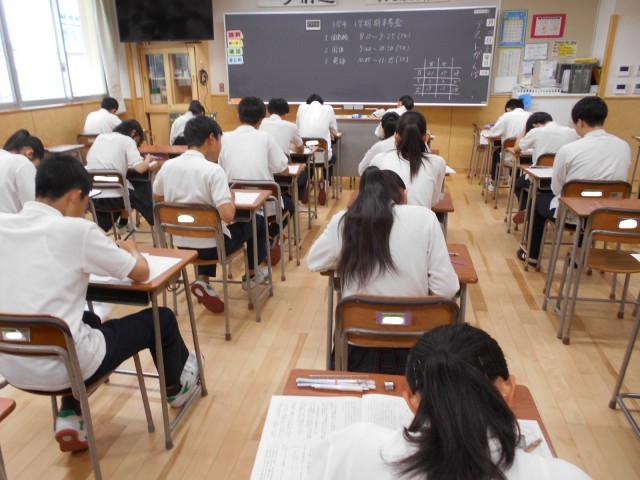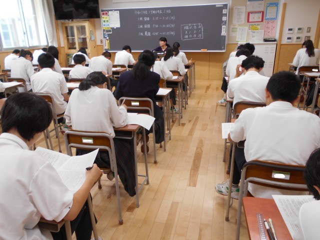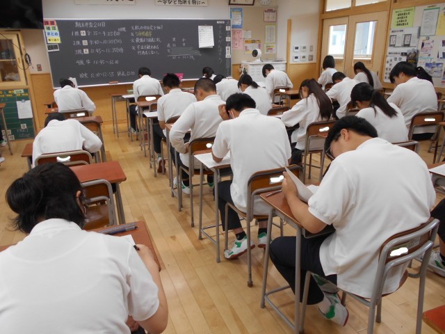 5教科目の期末考査です。3年生はいずれの教科も真剣に取り組んでいるのが伝わります。この後も頑張ろう!