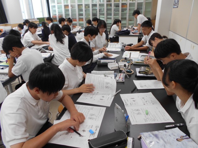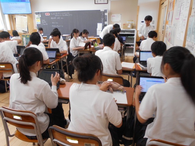 写真クリックして上から1組英語、2組技術、3組理科の様子