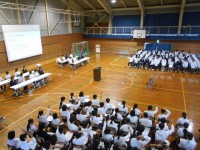合唱コンクールにむけて各学年でリハーサルを行いました。本番を想定しての出入りの...