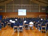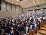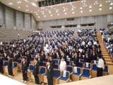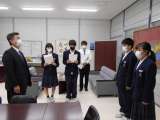 最後に、全校生徒で校歌を斉唱しました。ホールに校歌が響き渡りました。 感染予防の...