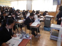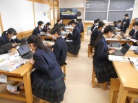 写真クリックして上から1組、2組、3組の様子 英語の調査に真剣に取り組む1年生...