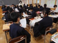 写真上から1組歴史、2組理科、3組英語の様子 3組英語では、先日の県立高校一般入...