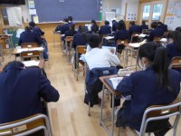 写真クリックして上から1組、2組、3組の様子 理科に取り組む2年生。集中してい...