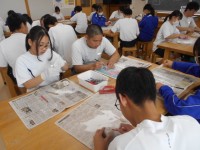 写真クリックして上から1組社会、2組美術、3組理科の様子 2組美術の石彫制作も...