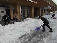 今朝も20センチ程度の新雪が積もり、除雪当番3年2組とボランティア参加の生徒が...
