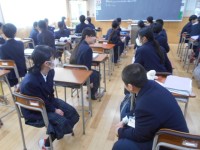 写真クリックして上から1組国語、2組社会、3組理科の様子 2組社会は、プリント学習。3年生の5教科の授業では、この時期になると問題演習の時間を確保する教科も多くなっています。今週は私立高校一般入試が...
