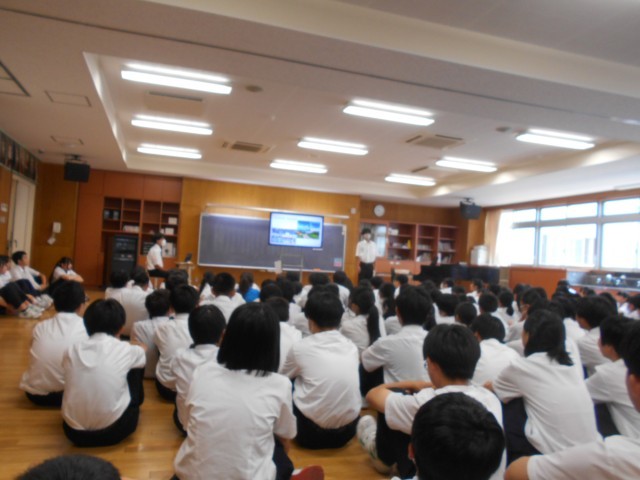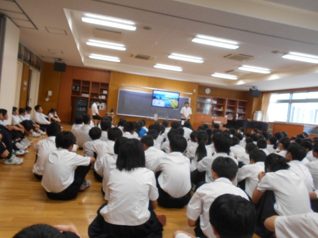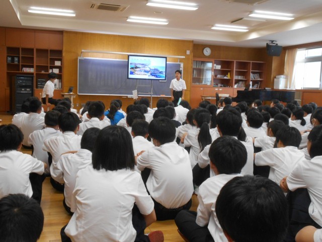 7月16日(水) 1学年授業の様子 国語「スピーチ大会」 公開日 2025/07/16 更新日 2025/07/16 1年生 国語の授業で、自分の「お気に入りの場所」についてスピーチをする学習です。今日は、各学級からの代表者15名によるスピーチ大会です。発表者のお気に入りの場所に対する想いがとてもよく伝わってくる素敵なスピーチでした。発表を聞いていた生徒たちも、発表者の問いかけに元気に反応しながら、聴き入っていました。進行も生徒の手で進められ、1年生の成長を感じました。
