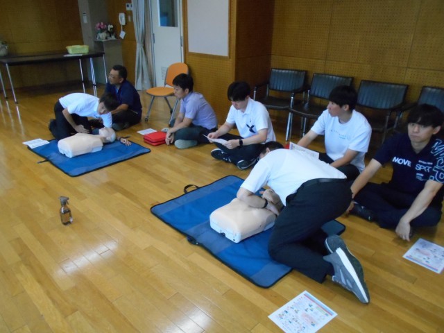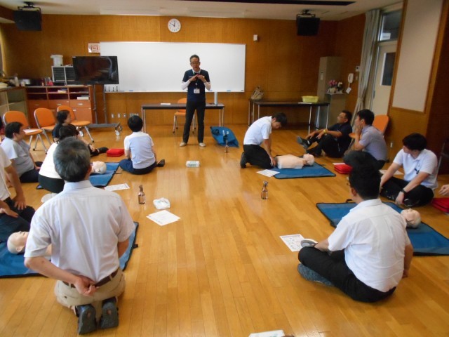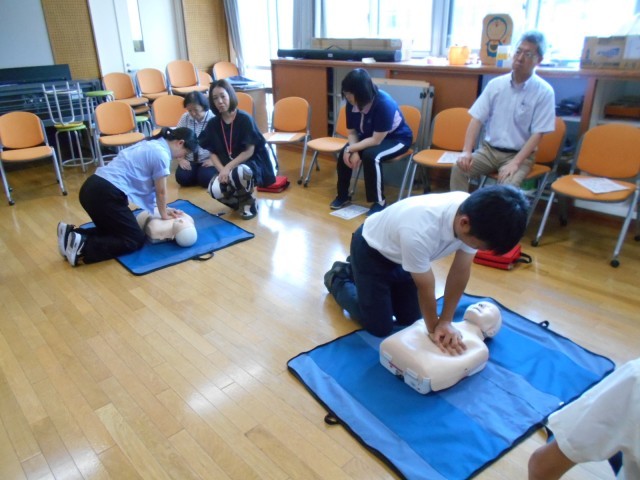 AEDの適切な使い方や緊急時の一時救命処置について、日本赤十字社の方から実技を交えて講習していただきました。