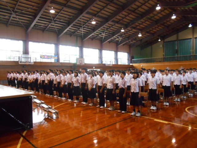 最後の校歌斉唱では、全校生徒の元気な歌声が体育館いっぱいに響きわたりました。