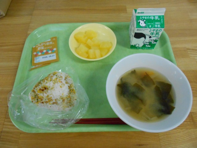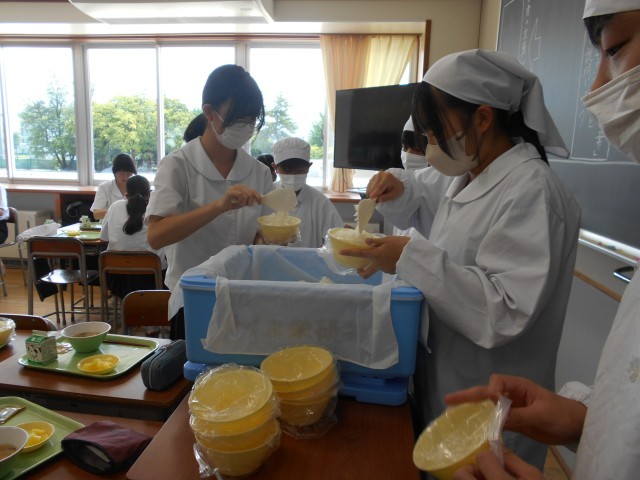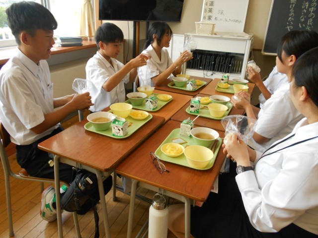 9月1日の「防災の日」にあわせて、常温で保存可能な食品を使った献立や、身近なものを食器の代わりにして食べる体験を通して、防災に対する意識を高め、災害が起きたときの備えについて考えを深める目的で、今日の給食は「防災の日献立」でした。