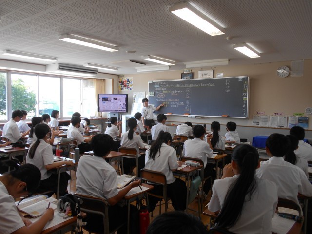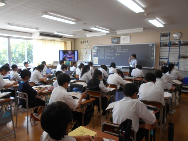 技術・家庭科(家庭分野)、数学、社会の様子です。数学は、1次関数のグラフの学習です。