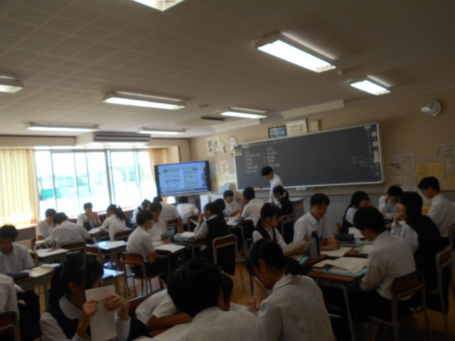 社会、理科の様子です。社会は公民の学習で、ある事例についていろいろな権利等を班で話し合っています。