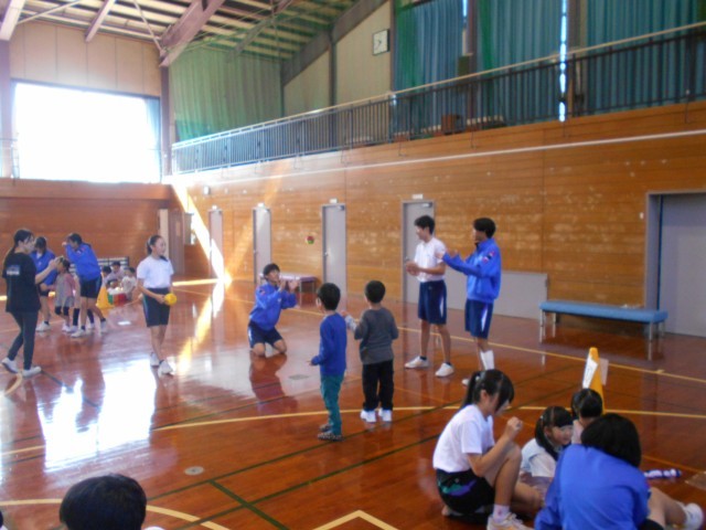 3年1組と4組の生徒は家庭科の授業で、幼児とのふれ合いを体験しました。