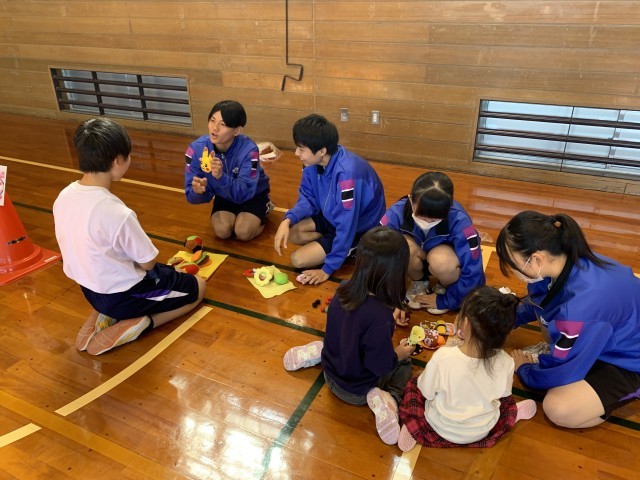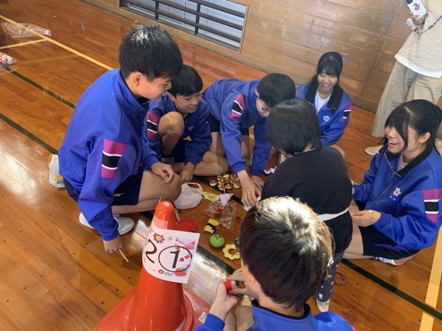 今日は3年2組と5組の生徒が、幼児訪問の授業を行いました。