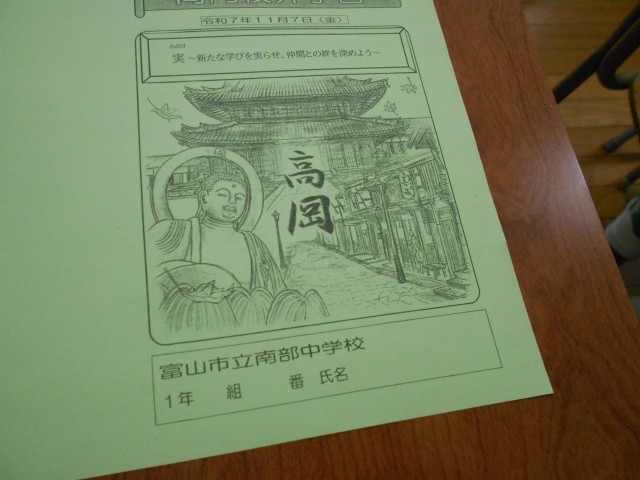 10月30日(木) 1学年 学年集会・高岡校外学習しおり製本