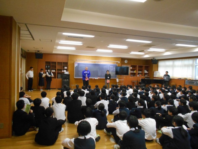 学年外の引率の先生方の紹介の後、学年代表から明日の校外学習の「安心安全を心がけ、学びのある校外学習にしたい」という意気込みを教頭先生に伝えました。