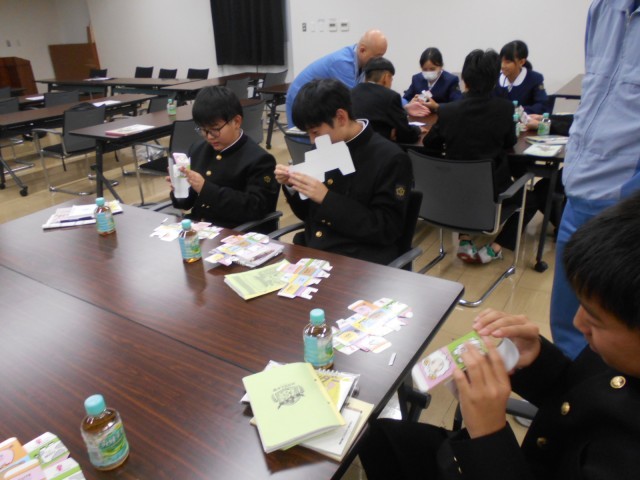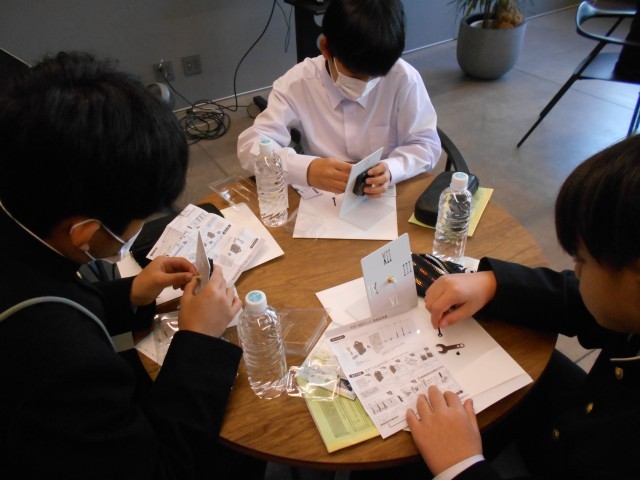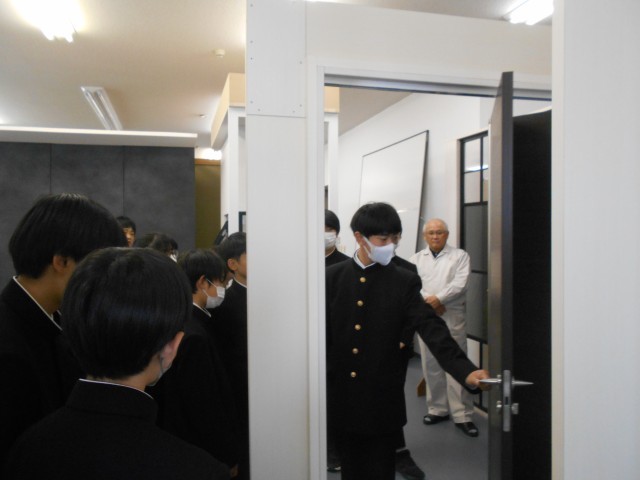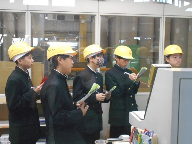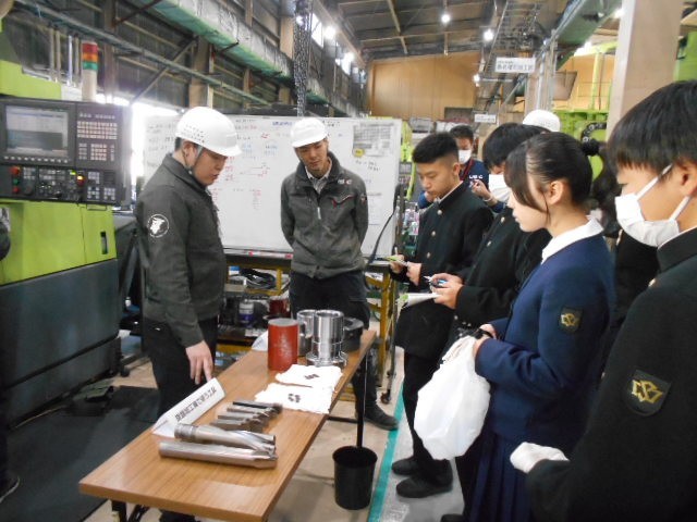 午前中は、クラスごとに二班に分かれ、工場見学に行ってきました。富山・射水・高岡市内のものづくり企業を訪問して、見学と体験を行いました。生徒たちは熱心に工場での作業を見学したり、職員の方に質問をしたりしていました。体験活動を用意してくださった企業では、それぞれの特色あふれるモノづくり体験をさせていただきました。
