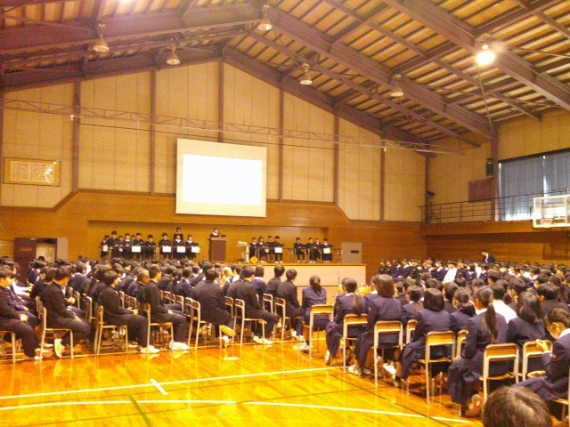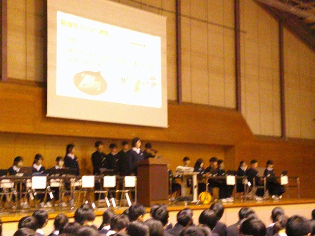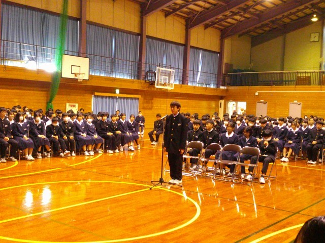5、6限目に後期生徒総会が行われ、生徒会執行部や各専門委員長から後期の活動計画案の説明がありました。