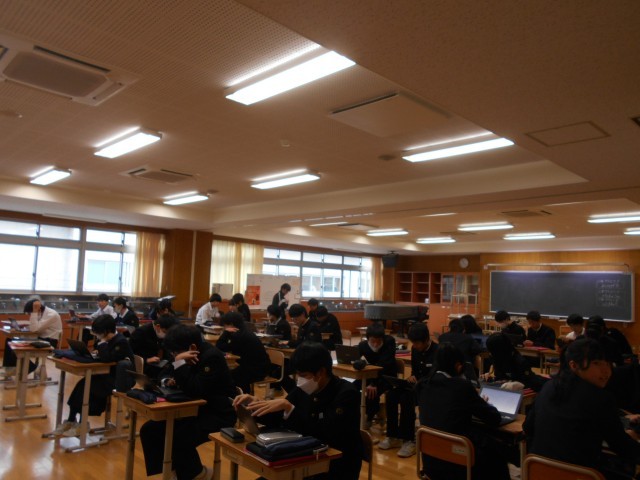 音楽、数学、社会の様子です。数学は、三平方の定理を利用した図形の問題に取り組んでいました。
