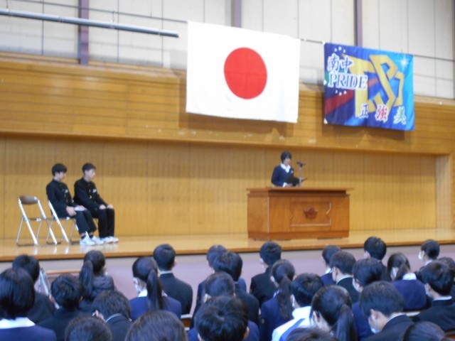 2学期を振り返って、各学年の代表から意見発表がありました。