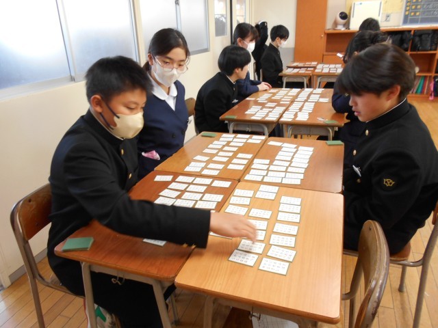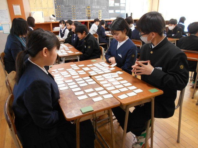 「日本の伝統文化に親しもう」を目標に、楽しく競技に臨みました。中には、小学校時代に経験したことがある生徒もいたようで、普段の授業では見られない一面をたくさん見ることができました。