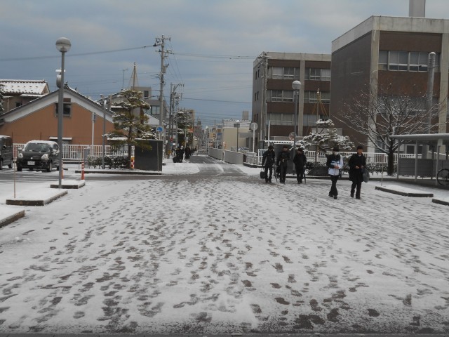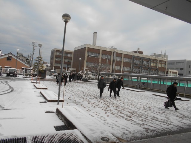 雪景色の朝となりました。除雪当番初出動です。今日は3年生のクラスが担当でした。
