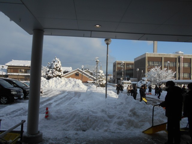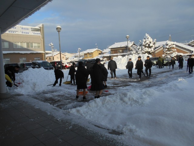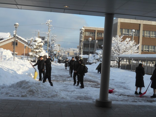 土日の大雪で、今朝は3年生が除雪活動をしてくれました。おかげで一気に通路が広がりました。