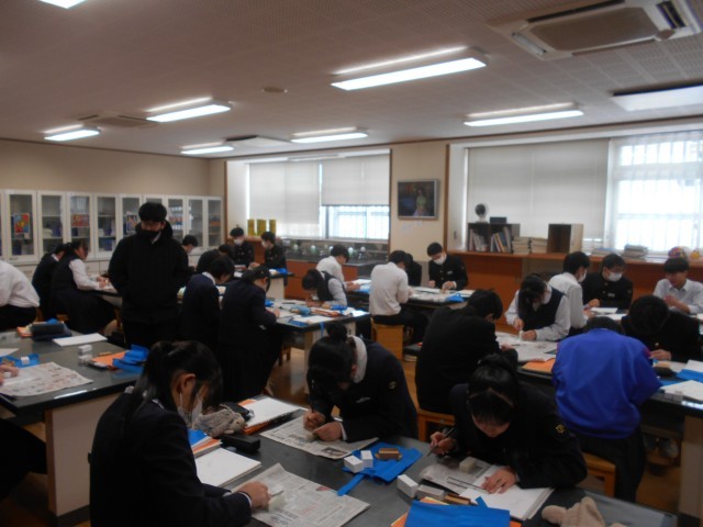 美術、数学の様子です。 美術は、ペーパーウエイトづくりです。