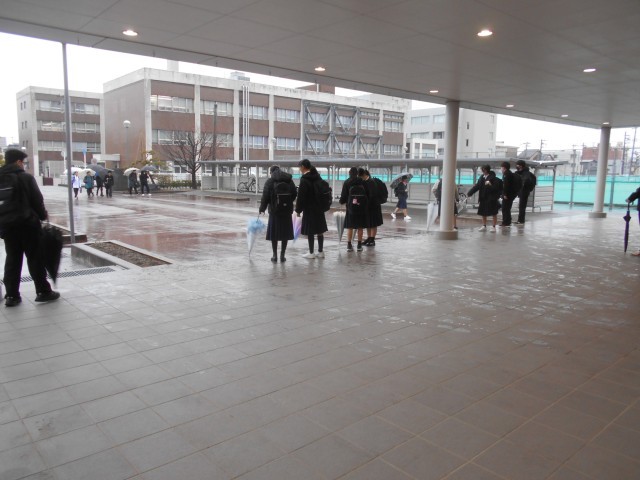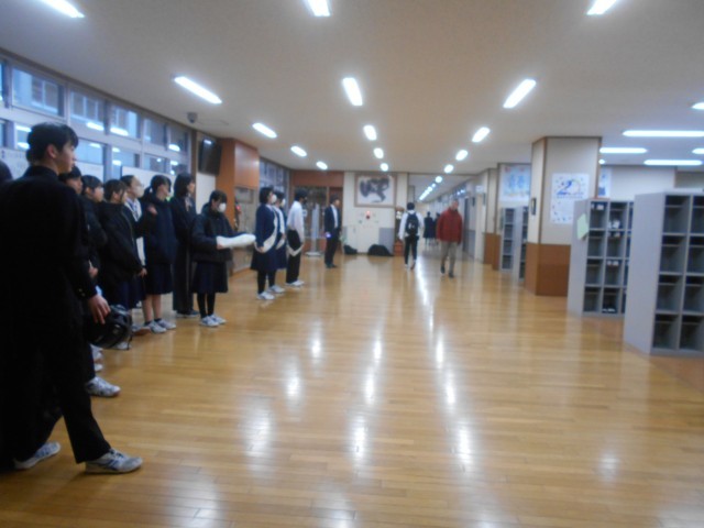 生徒玄関エコスペースでは、挨拶運動と選挙運動が同時に行われていました。