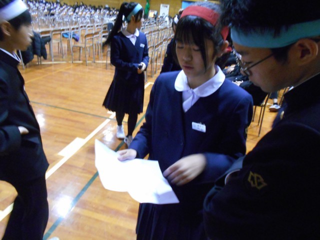 これまでお世話になった3年生への感謝の気持ちを伝えるために2年生は、放課後などの短い時間を使いながらどうすれば3年生に喜んでもらえるかをみんなで考え、協力して準備を進める姿が見られました。本番のギリギリまで実行委員を中心に確認作業を行っていました。