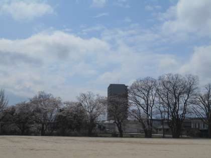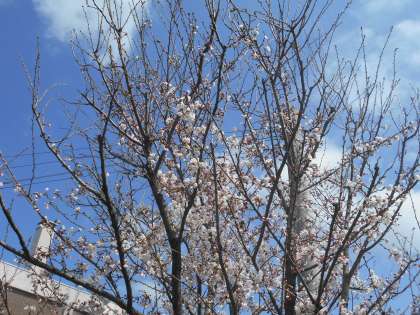 1日の時点では蕾だった南部中学校の桜も、気になって確認してみると、開花していました。生徒玄関前の桜も、グラウンドの桜も太陽の光を浴びて、とてもきれいです。生徒の皆さんが登校する頃には、満開になっているのではないでしょうか。