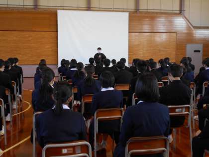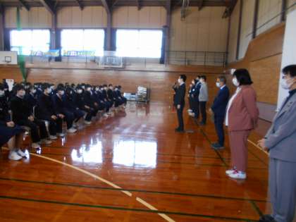 3年生になってはじめての学年集会が行われました。学年担当者からの話の後、学習、生活についての話がありました。