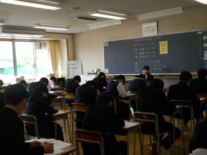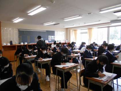 中教研学力調査1日目は、国語、理科、英語でした。休み時間には、テキストを見直しこれまで学習したことを復習して臨みました。明日の教科も頑張りましょう。