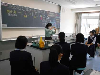 理科の授業は、早速実験の時間で、酸化鉄を加熱すると何と何に分かれるのか実験をしていました。
