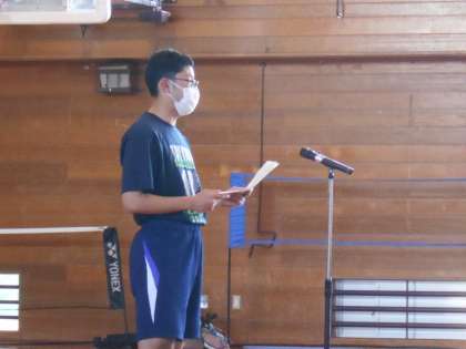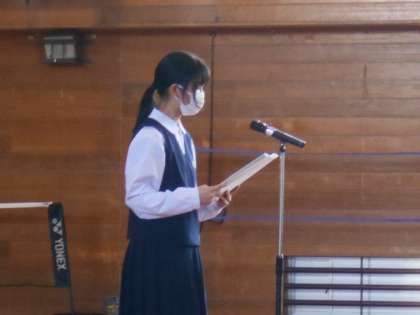 本日部活動紹介が行われ、生徒会長と部長会長のあいさつからスタートしました。