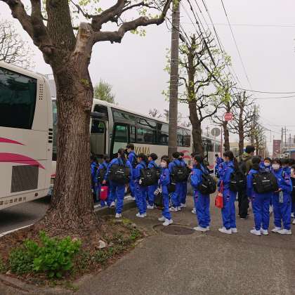 4月14日(木)1学年 砺波校外学習(出発の様子)