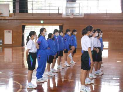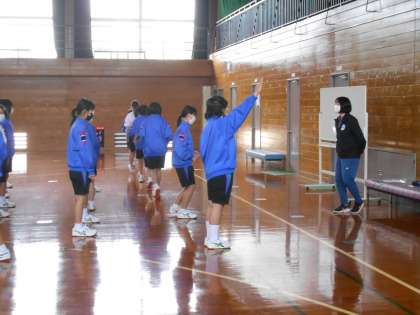女子保健体育の授業では、最初の並び方や体操のときの広がり方を確認していました。
