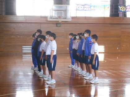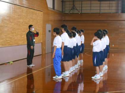 男子保健体育の授業も、並び方や体操の隊形に広がるときの規準列の確認をしたりしました。みんな緊張している様子ながらも、きびきび動いていました。