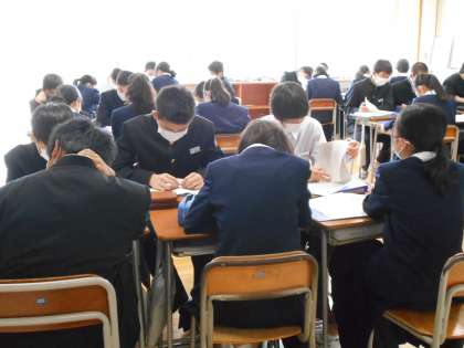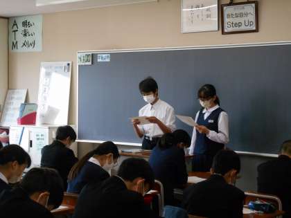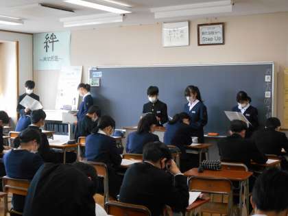 前期生徒総会に向けて、学級討議を行いました。代議員や専門委員から活動計画案について説明があり、質問や修正案を出し合いました。昨年度の取組を振り返り、よりよい南中になるよう、真剣に話し合う姿が印象的でした。